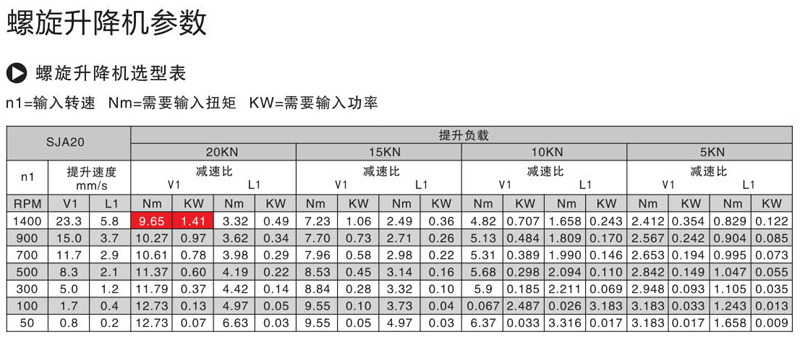 螺旋升降機正常工作狀態(tài)下的輸入功率不能超過最大輸入功率,輸入功率kw=(滿載扭矩Nm x負載率x輸入轉速rpm )/ 9550m,