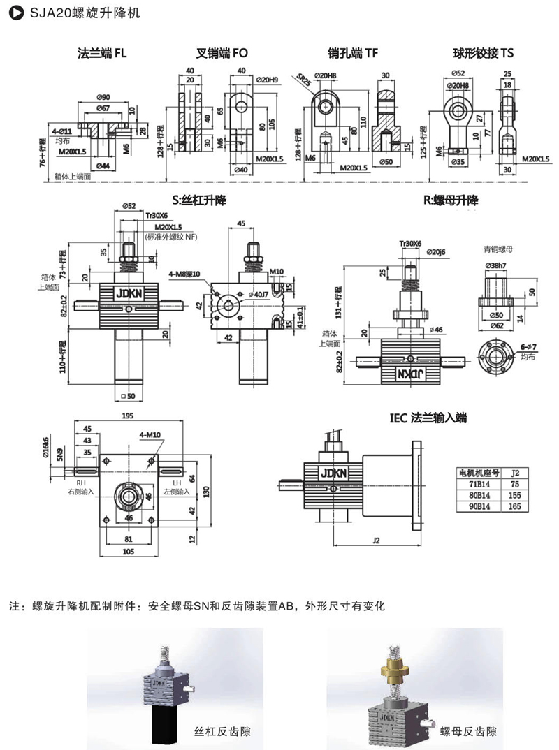 可配編碼器、限位開關、防塵罩、安全螺母、減速電機、普通電機、伺服電機、不銹鋼材料等。